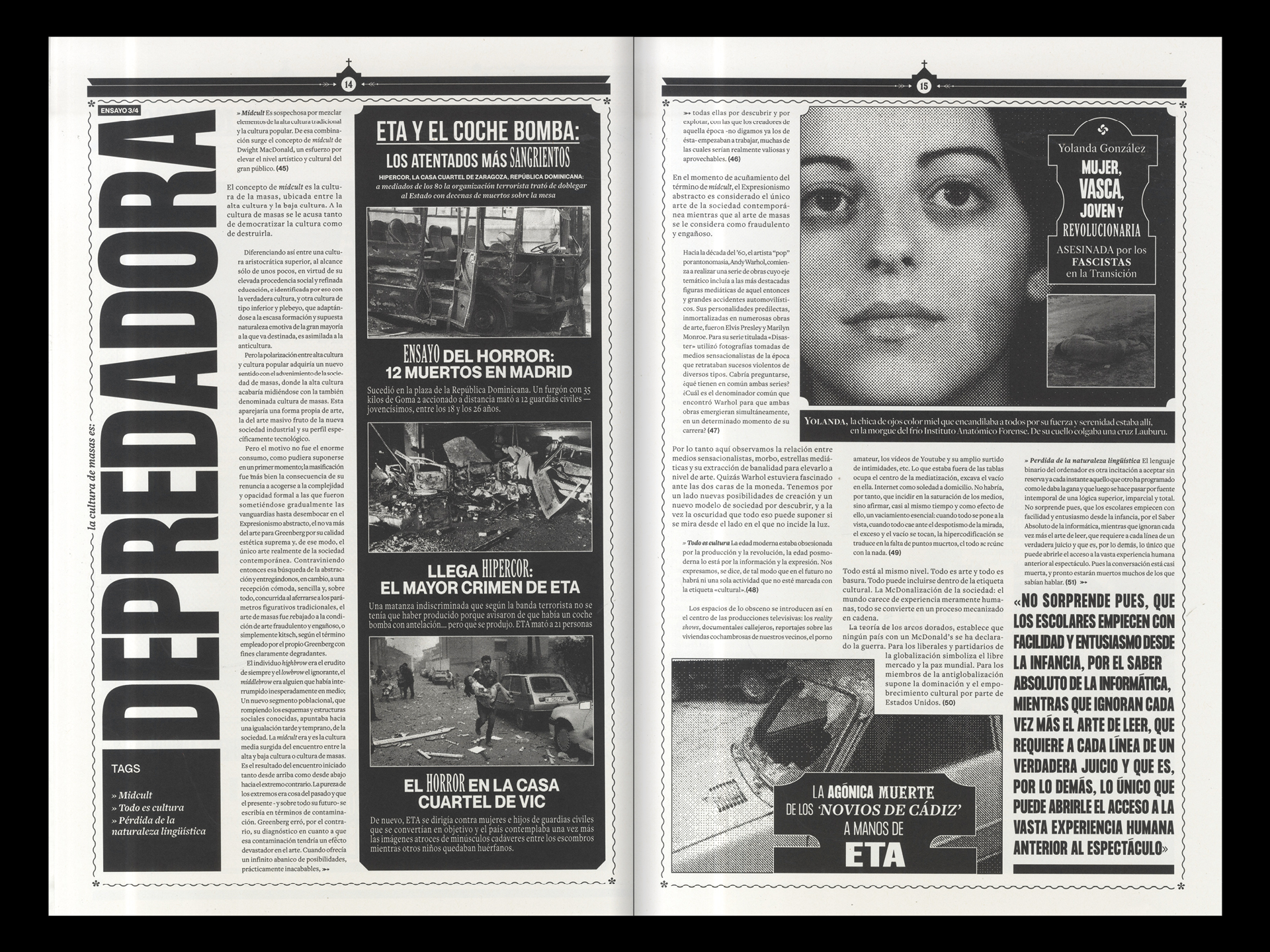 This work is a personal reflection about the morbid methods in which we communicate: the ways in which it captivates us, consumes us, and its effect on our imaginations. The purpose is to substantiate the danger that this poses to the neutrality of information and how it develops in the Age of Knowledge.