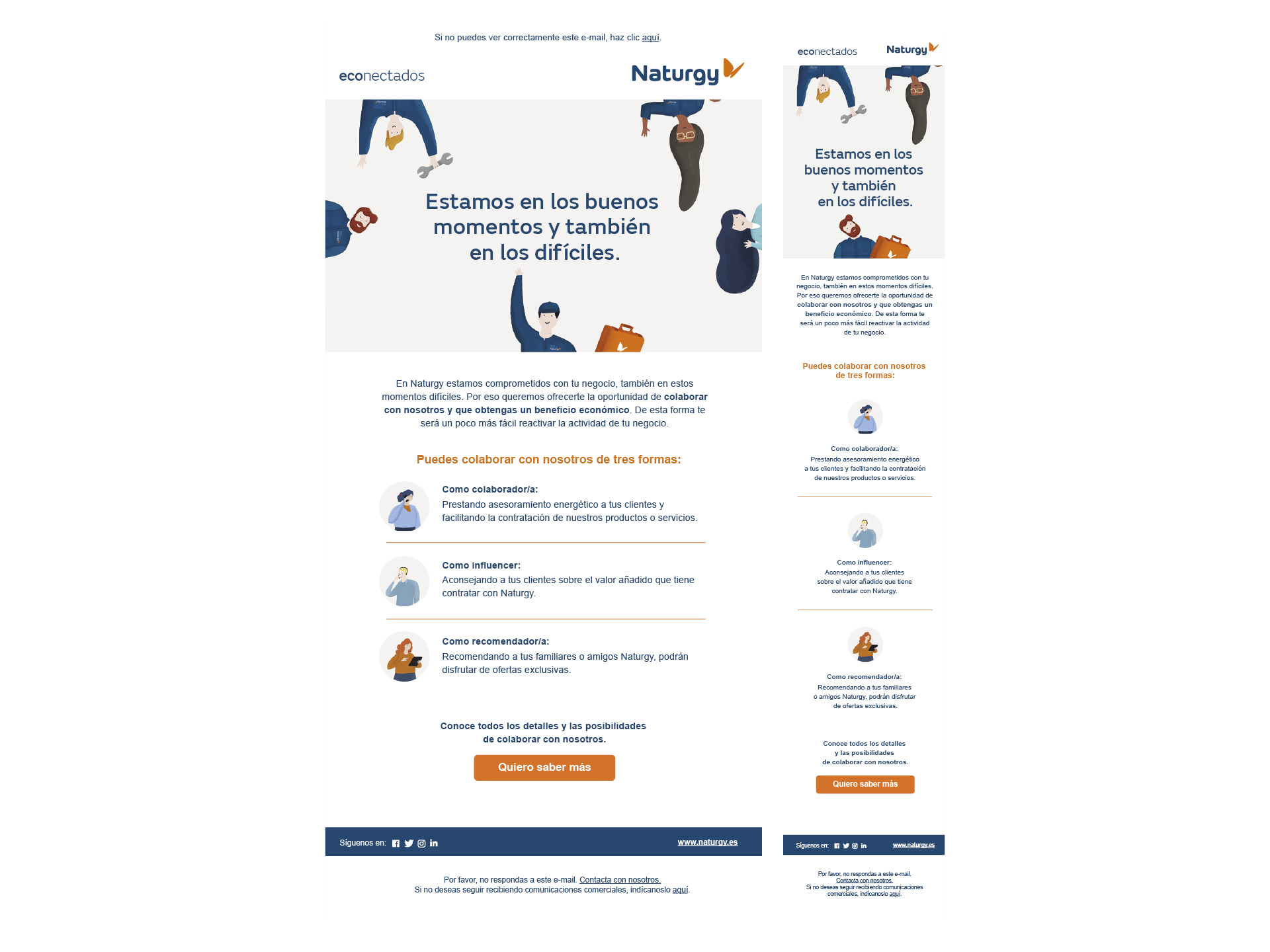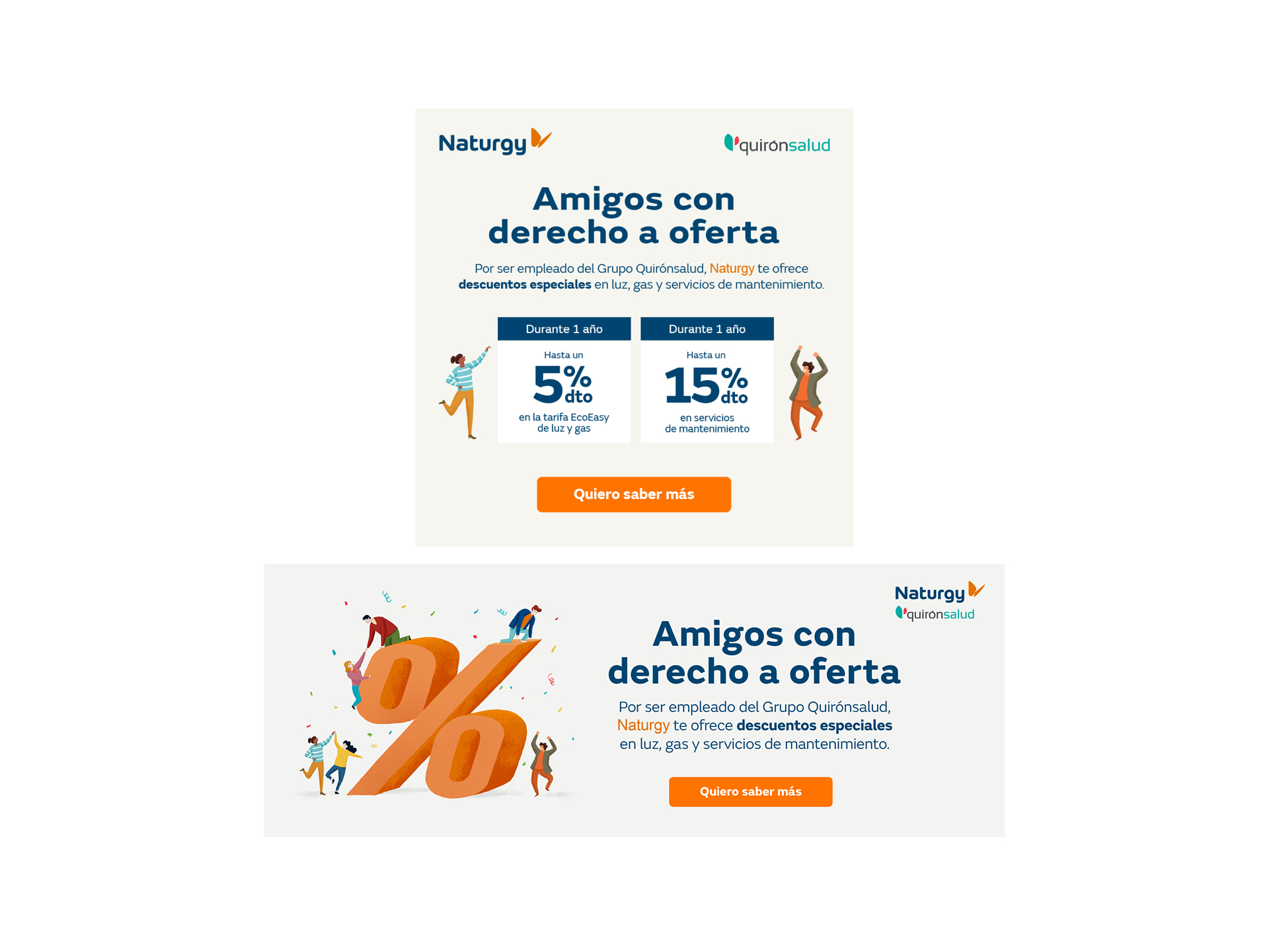 Assisting Art Directors with online and offline materials for Naturgy. Daily tasks included emailing, mailing, social media, web design, landing pages, banners and commercial invoices.